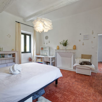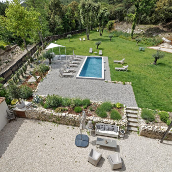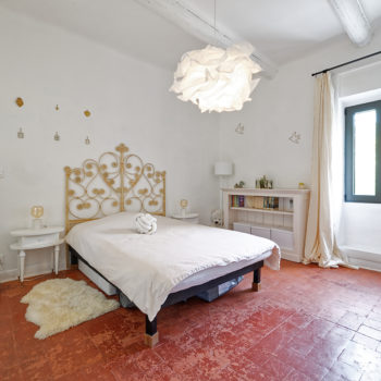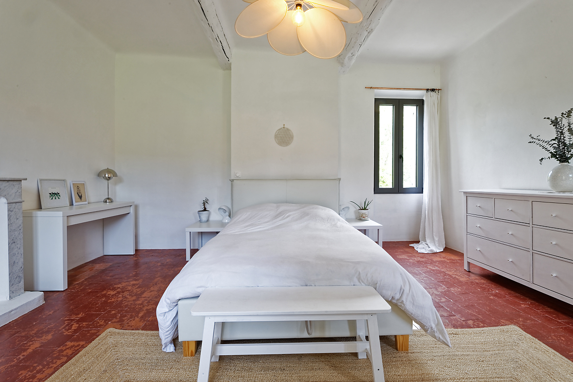 Bastide rénovée dans le Vaucluse. Un charme fou pour cette bastide avec une façade en pierre de la région, qui vous accueille dans un vaste salon cathédrale aux tons clairs. Des murs, des poutres peintes en blanc immaculé, des matériaux bruts se mêlent à des parquets anciens dans leur jus, de belles tomettes, des papiers peints. Les différentes chambres au décor simple et soigné sont très lumineuses. Un belle piscine fait face à la maison dans un immense jardin de 3700 m2 paysagé verdoyant, arboré de chênes et d’oliviers, ou l’on trouve également de nombreux recoins, une terrasse ombragée, un terrain de pétanque.