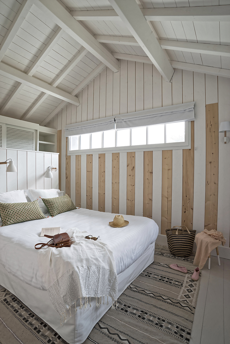 des murs en bois peints en blanc, des pièces de vie lumineuses