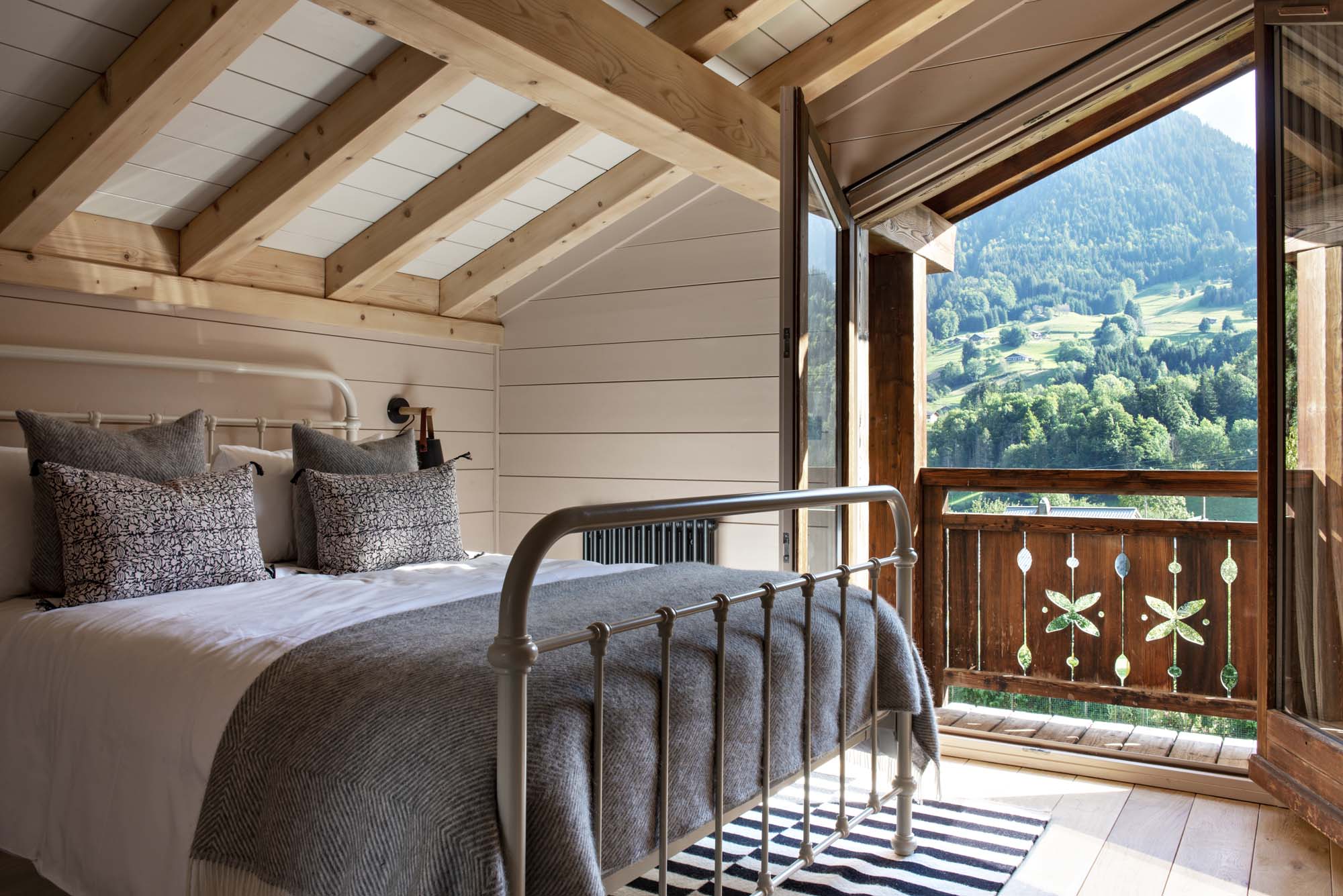 Bois clairs et murs, mobilier, décoration et aménagement élégants, les chambres sont réparties sur les trois étages de ce chalet pensé avec sobriété. Un balcon et une belle terrasse avec une vue imprenable.