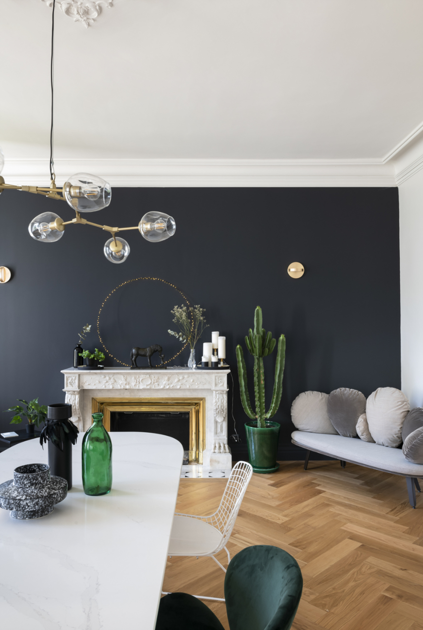 cheminée, ancien, contemporain, rénovation, salle de bain, hauteur sous plafond, parquet, murs peints couleurs