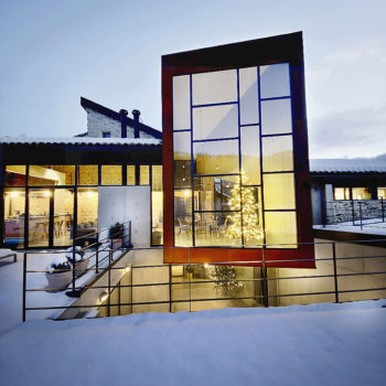 Renovated farmhouse in the High Alps Inside large spaces with very beautiful volumes, bright, with wide openings, mixing different raw materials, old and very contemporary, bright and spacious rooms with sober and neat decoration.