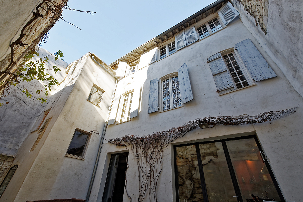 Hôtel particulier rénové intra-muros, à Avignon. A l’intérieur, de très grandes pièces réparties sur trois étages, avec hauteur sous plafond, mêlant matériaux anciens, poutres apparentes, sol béton, murs en pierres, le tout rénové avec gout. A l’extérieur, une cour intérieure aménagée.