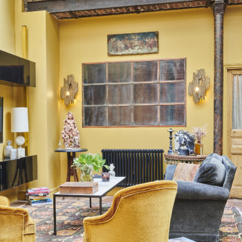 Loft in Montmartre. A lot of charm for this former dance hall entirely revisited and transformed into a bright and colourful atypical living space. A large living room with a glass roof, high ceilings, a mezzanine, cosy bedrooms, painted walls and a converted basement.