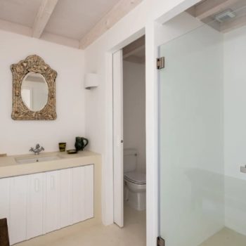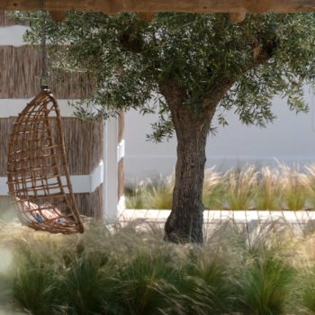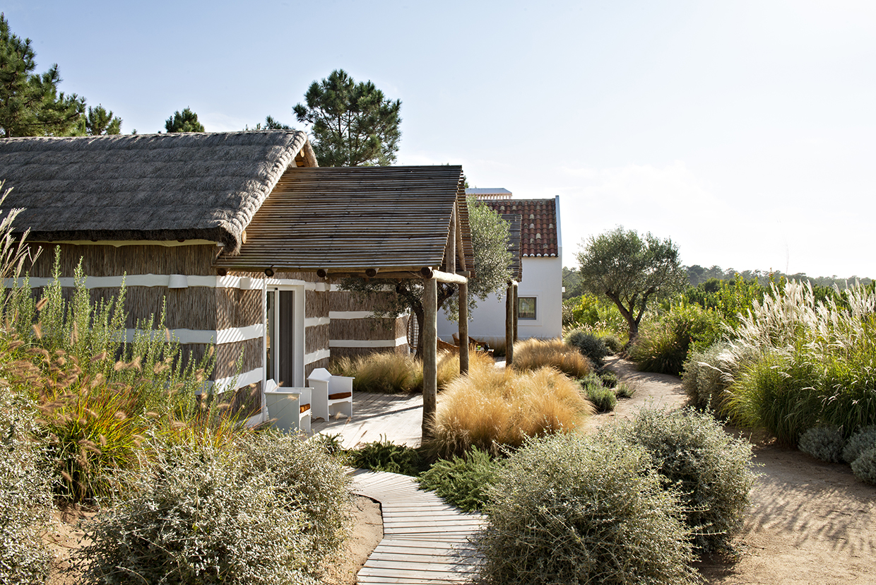 Total immersion in Portuguese soil with this bright and warm house. The raw local materials blend harmoniously with the whitewashed walls for a soft, bohemian atmosphere from the living room to the bedrooms. A sober and careful decoration that can also be found outside under the protective awnings, around the swimming pool and in the garden where the house, with its feet in the sand, blends in perfectly with the plants and other local grasses.