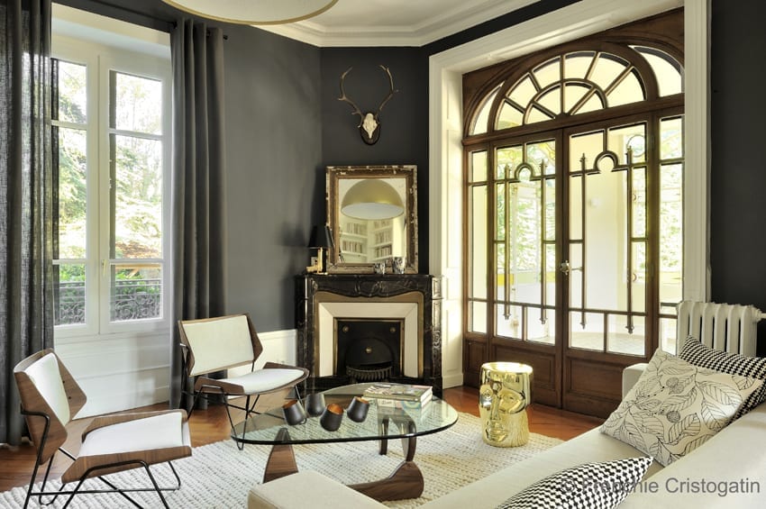Bourgeois house located near Lyon. Inside beautiful volumes for living rooms, bright, with a contemporary decoration, a beautiful veranda with its worked and colorful glass windows. Outside, a large green park, trees and with a swimming pool and its terrace…