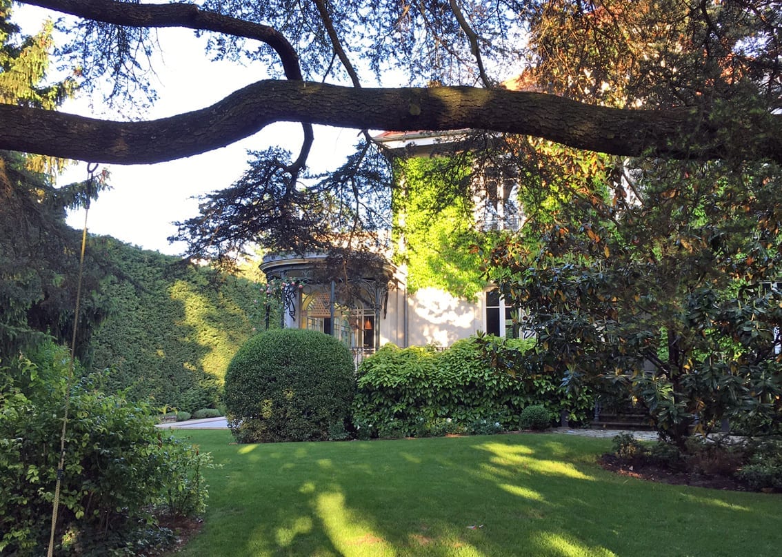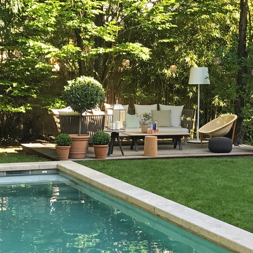 piscine, terrasse en ville, pelouse, serre / véranda / orangerie