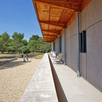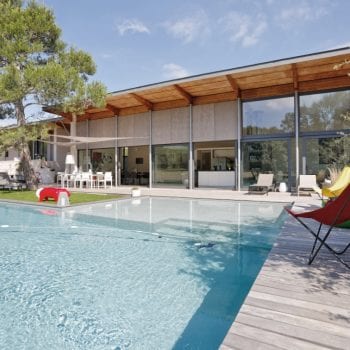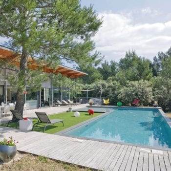 At the foot of the Alpilles, this contemporary house is nestled in the heart of a pine forest… Inside, a very large bright living room overlooking the outside by large bay windows. Outside, there is a wooden terrace, a swimming pool and a large garden.