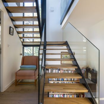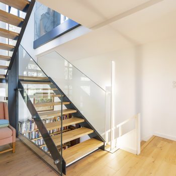 baie vitrée, cuisine ouverte, contemporain, escalier, cheminée, salle de bain, carrelage/tomettes, parquet, luminosité