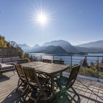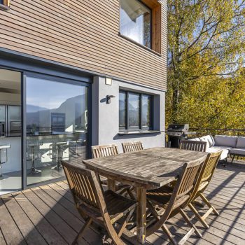 Cette maison contemporaine idéalement agencée avec une grande pièce de vie, des chambres lumineuses, une vue imprenable sur le lac d’Annecy que l’on peut également admirer, installé confortablement sur  la terrasse en teck…