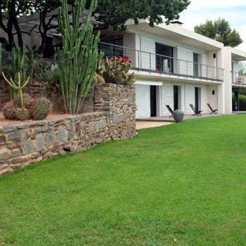 Contemporary house with sea view in L’Escalet. Beautiful outdoor spaces, with terraces arranged and shaded, wooden terrace around the pool, a garden landscaped and green.