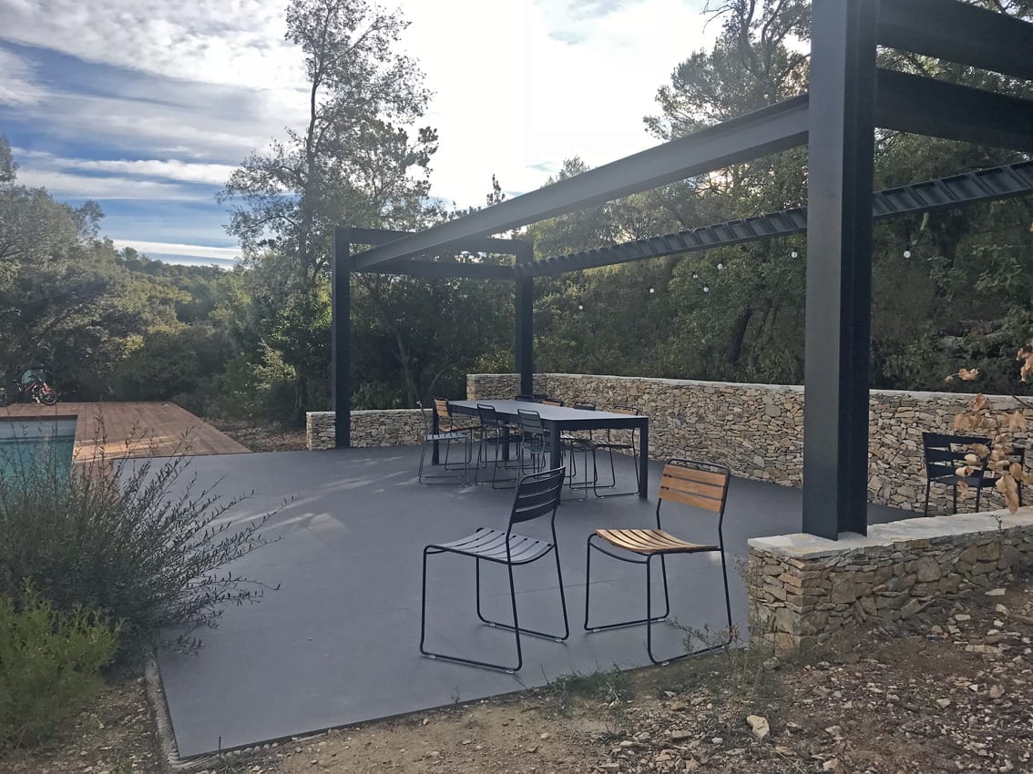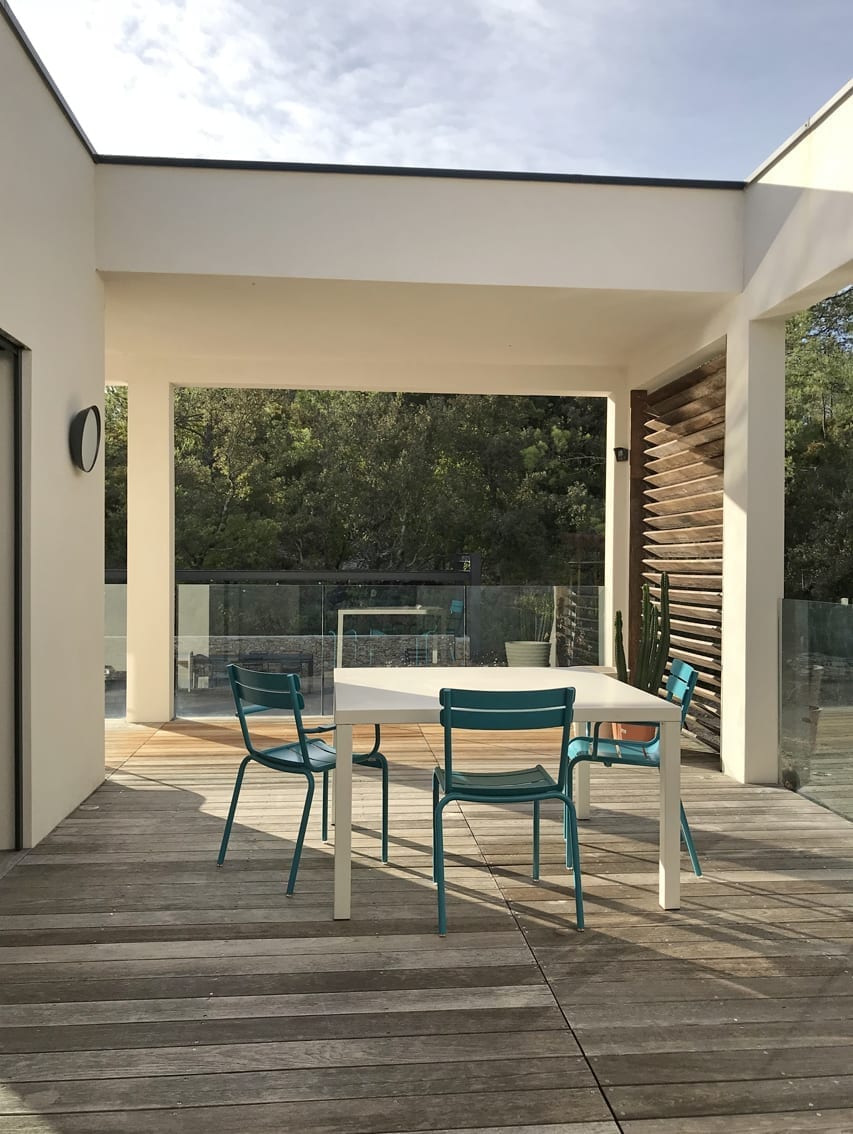 Belle maison contemporaine de 2014, construite en pleine garrigue.sur les hauteurs de Nîmes. A l’intérieur des pièces de vie très lumineuse ouvrant par de larges baies vitrées, parquet, murs clairs, aménagement et décoration contemporaine. A l ‘extérieur, plusieurs espaces aménagés, terrasse couverte, terrasse bois pour la piscine, un jardin paysagé verdoyant