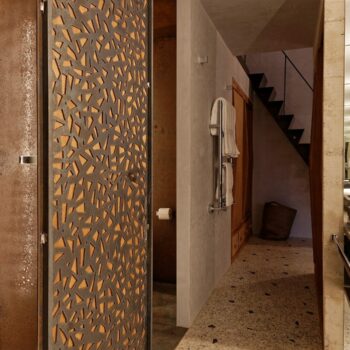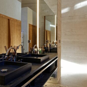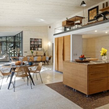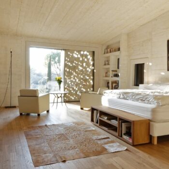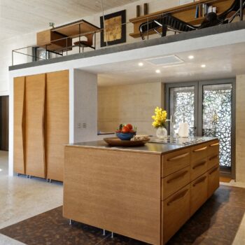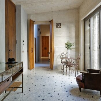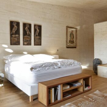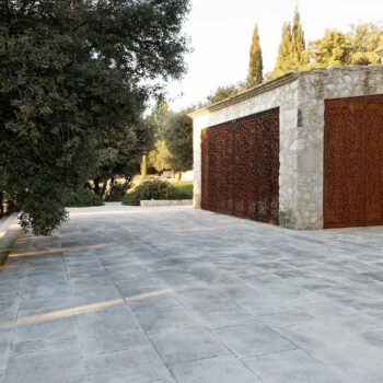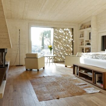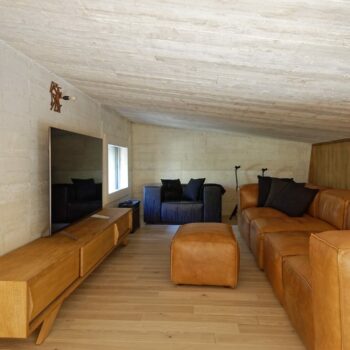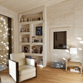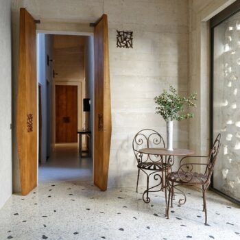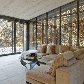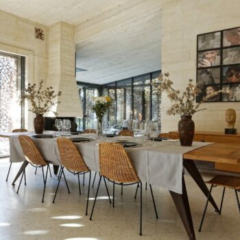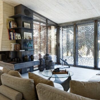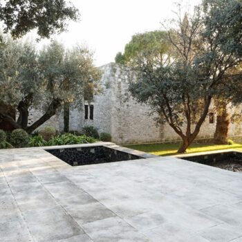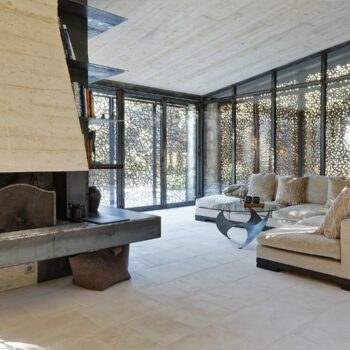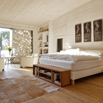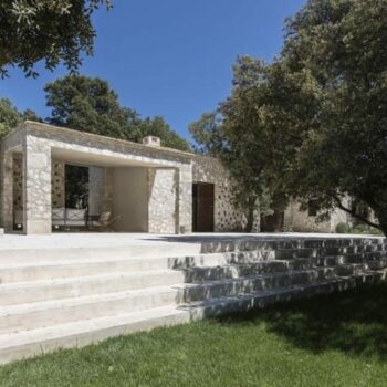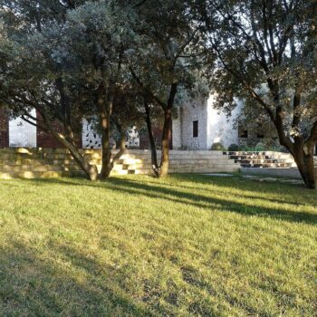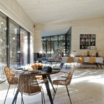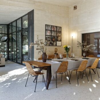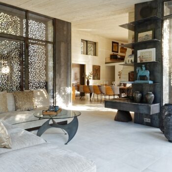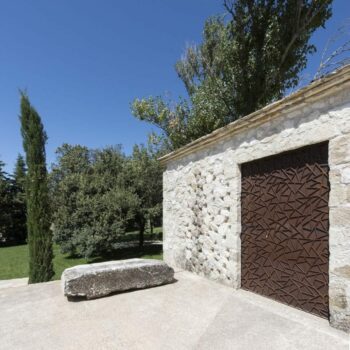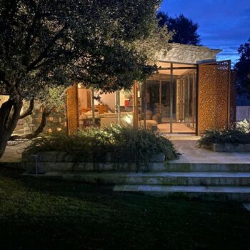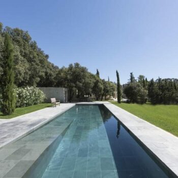 Cette maison d’architecte propose des volumes hors norme. Installée dans la campagne provençale, elle s’intègre parfaitement dans l’écrin de verdure aménagé où se mêlent terrasses, bassin de nage, pins parasols, cyprès, oliviers…