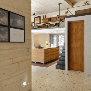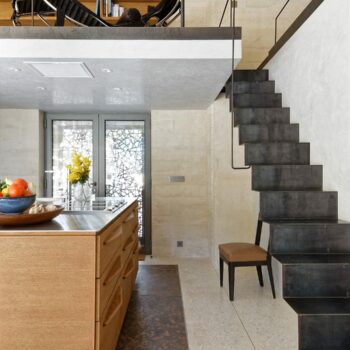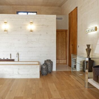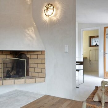 baie vitrée, contemporain, escalier, cheminée, salle de bain, hauteur sous plafond, carrelage/tomettes, parquet, luminosité
