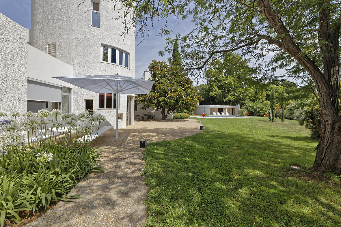 Architect house of the 70s in perfect condition near Arles. Inside, beautiful living rooms and bright rooms, with original design furniture, quality materials, walls and elements of curved shapes that give fluidity to the different volumes.Outside, a white facade, a landscaped garden, wooded and green, with wide lawn areas, a swimming pool with a large terrace and pool house with rounded shapes.