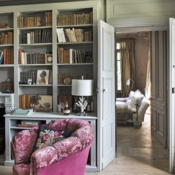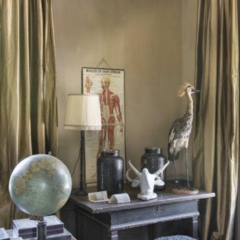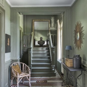A l’intérieur des tons sourds et mats, une enfilade de pièces le long d’une coursive au sol de mosaïque,