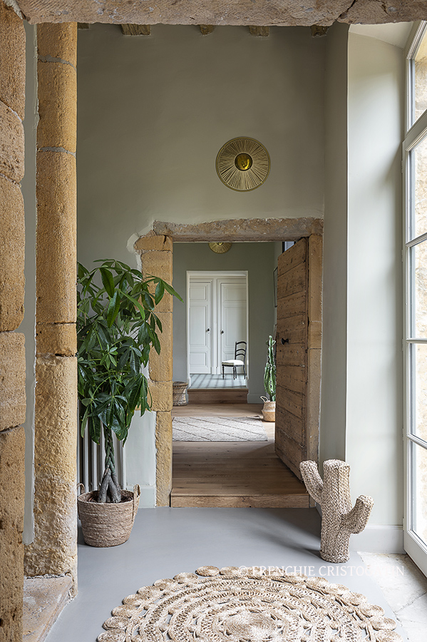 Golden stone house in the Lyon region. Charming facade in local stone for this pretty house renovated with great taste and simplicity. A concrete floor, painted walls, golden stones, natural wood, furniture and objects chosen with care that can be found in the different areas of the house, give character to this elegant house which, with its green garden and swimming pool, fits perfectly into the surrounding countryside.