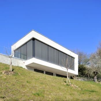 Maison d’architecte dans les Monts d’Or , à proximité de Lyon. Intérieur épuré et mobilier contemporain, grands volumes intérieurs . A l’extérieur, jardin et piscine…