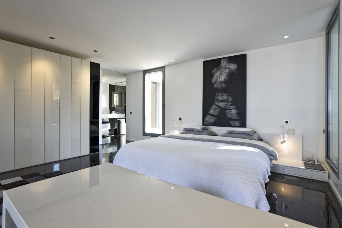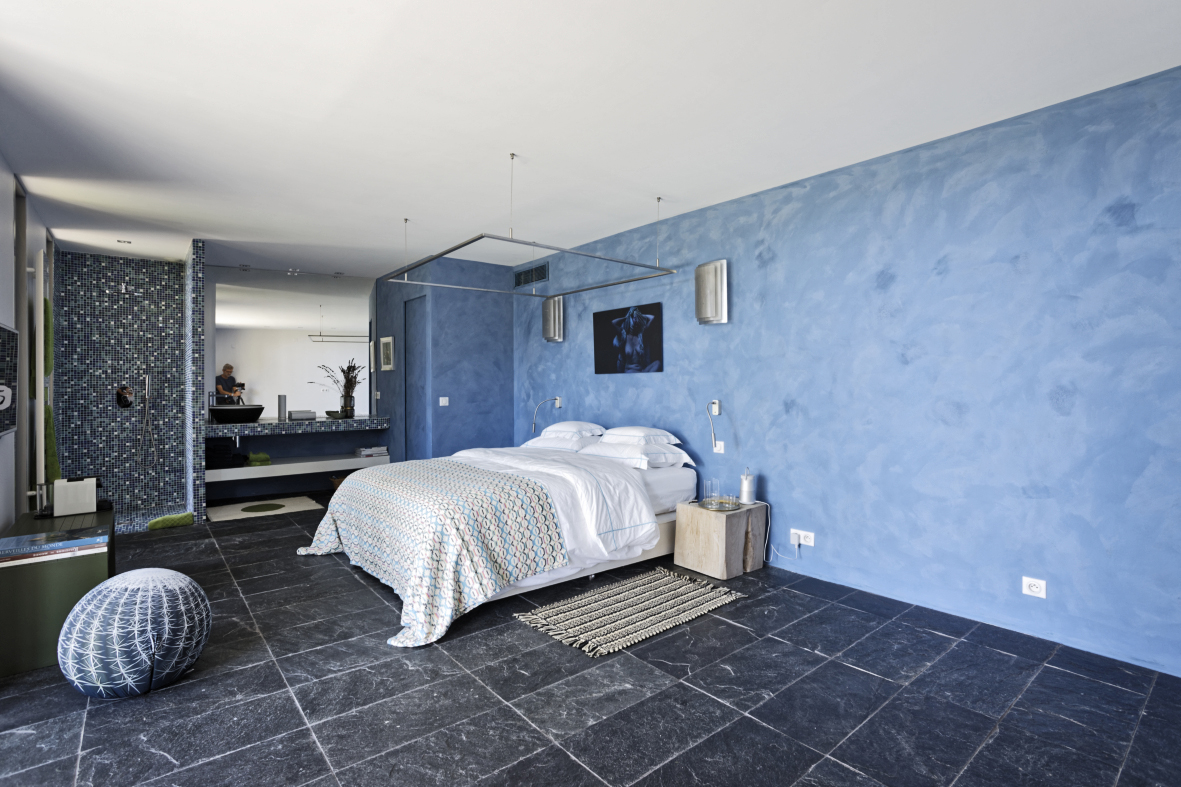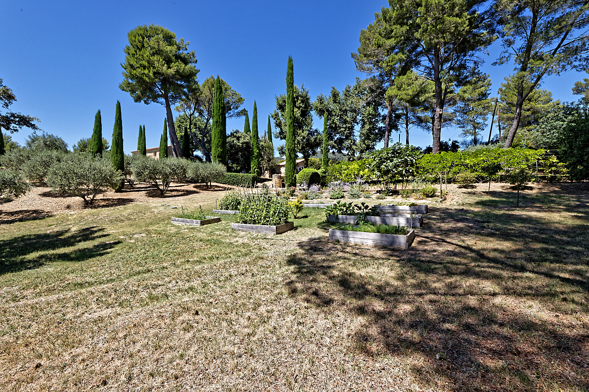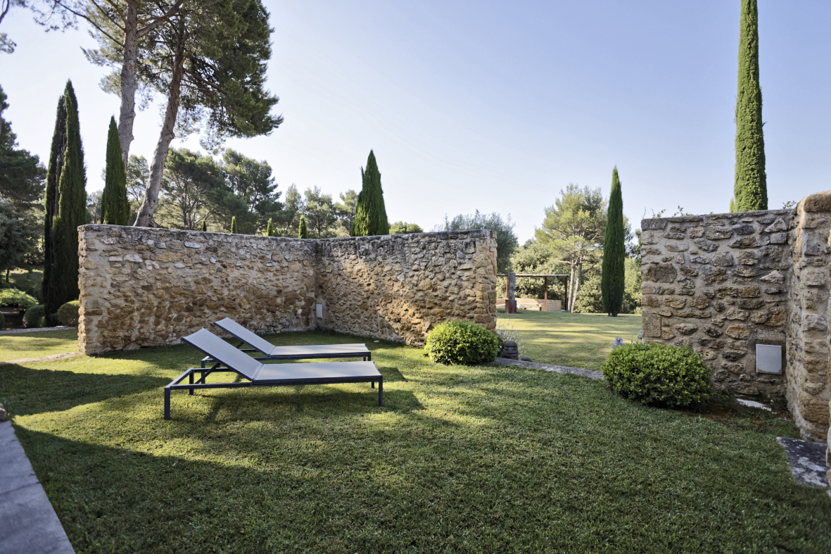 Renovated farmhouse in the Luberon. Inside, very contemporary furniture and minimalist fittings for this Provencal house completely redesigned . Sober materials and white walls.Large bright living rooms opened by large windows. Spacious and bright rooms. Outside, a large landscaped and maintained park, persistent vegetation made of cypresses, olive trees, typical of the south. An impressive swimming pool extends for a long time from the perspective of the house.