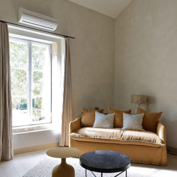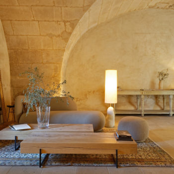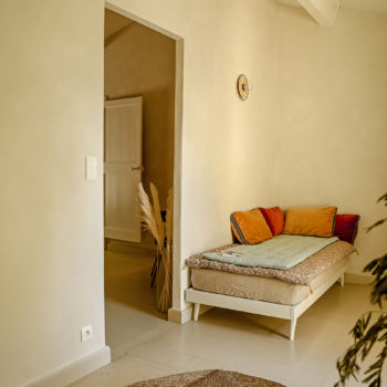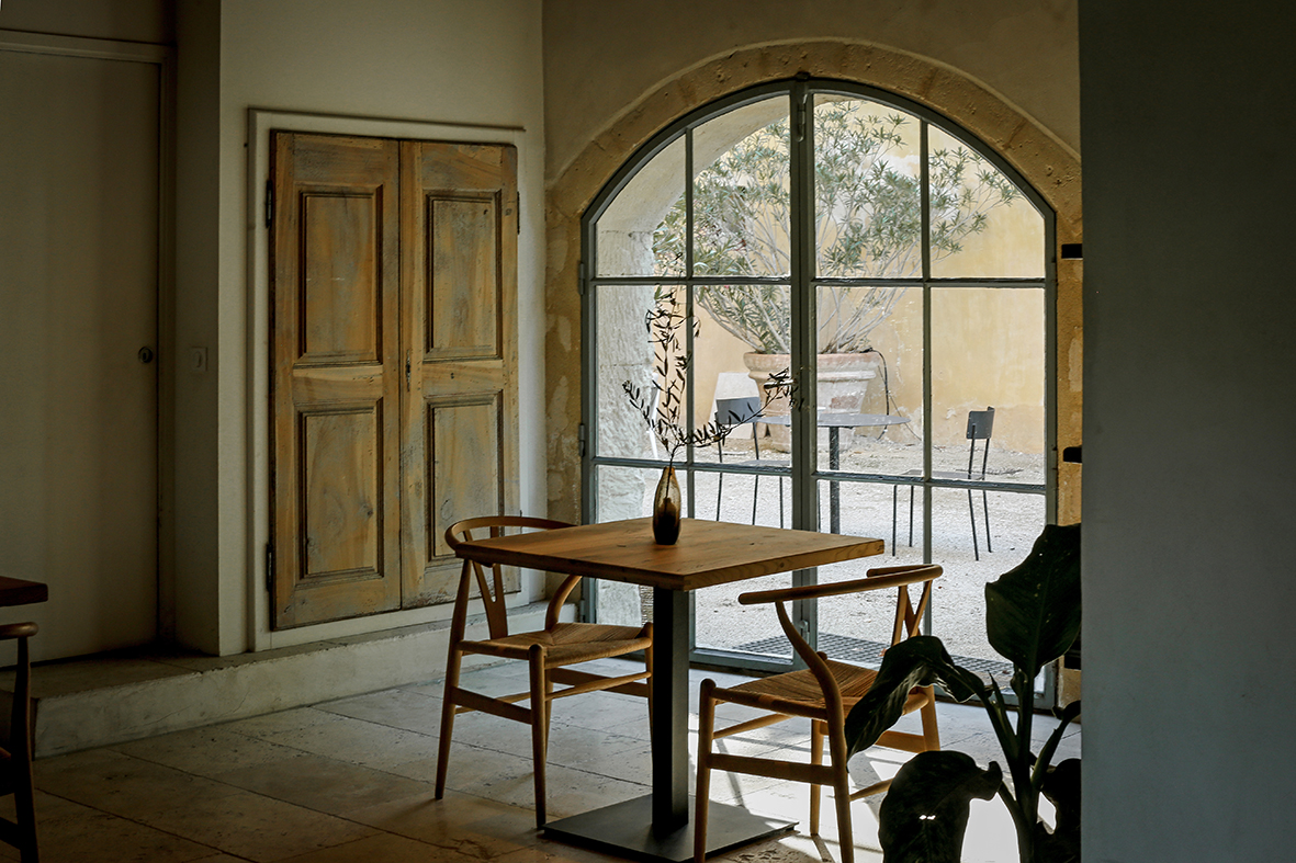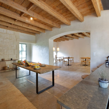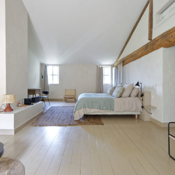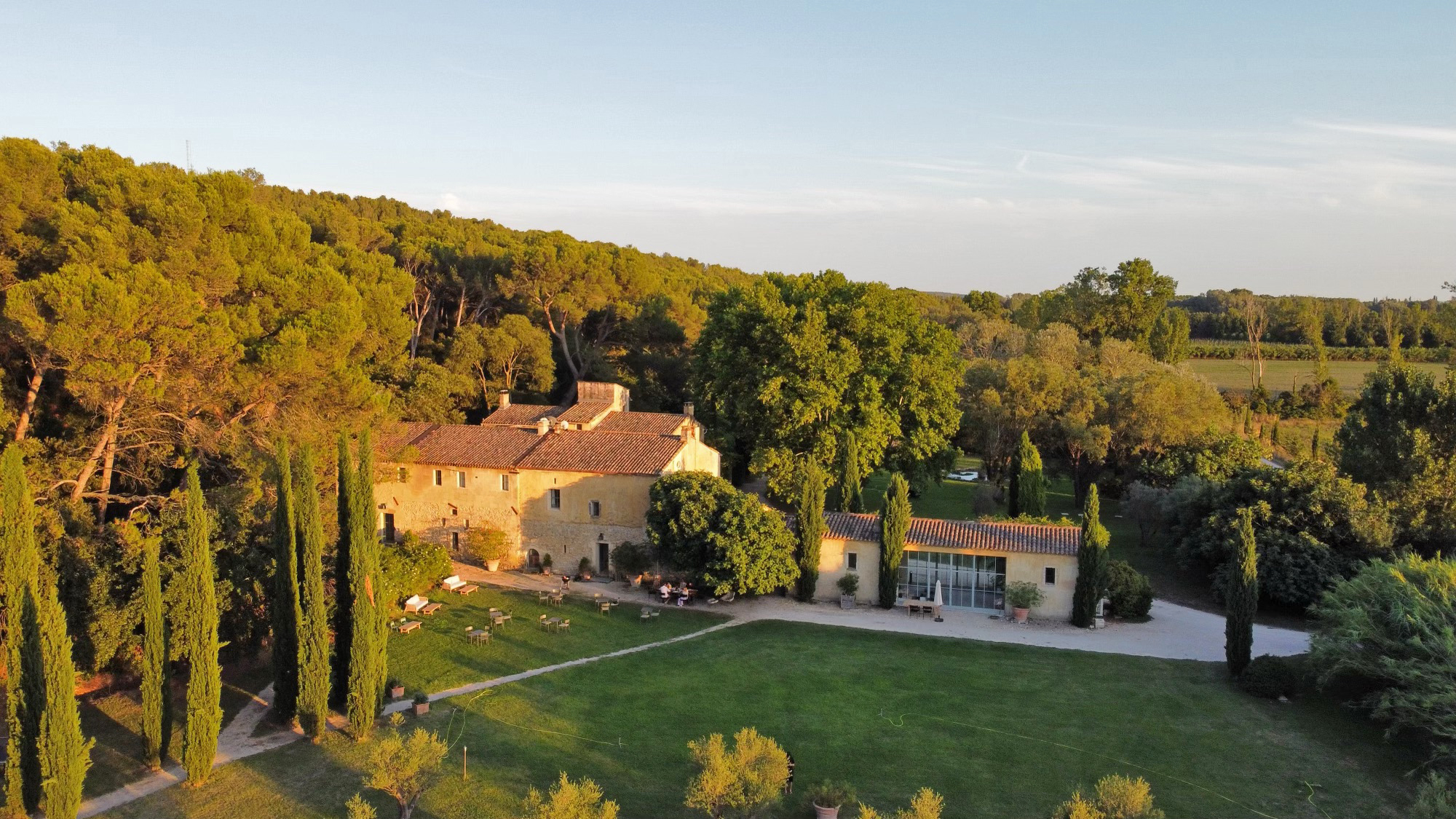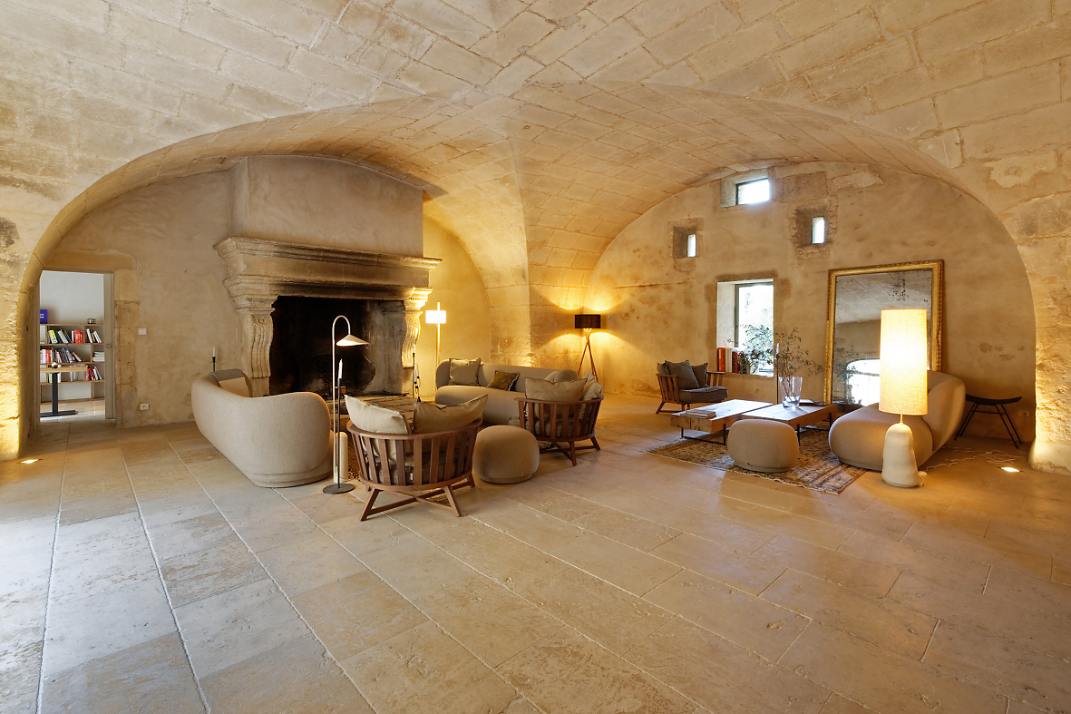 Mas et ses dépendances rénovée près d’Arles. Un sol dallé, des murs bruts pour des salles voutées, de vastes chambres où le parquet et les murs blancs donnent une ambiance douce, une pièce monumentale avec grande hauteur sous plafond et une orangerie rénovée. Les différents corps de bâtiments du domaine trouvent place dans un vaste parc arboré accueillant une jolie piscine.