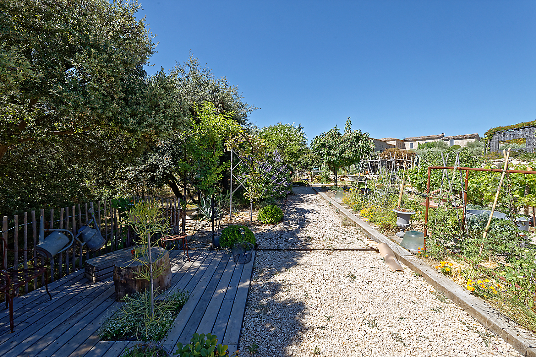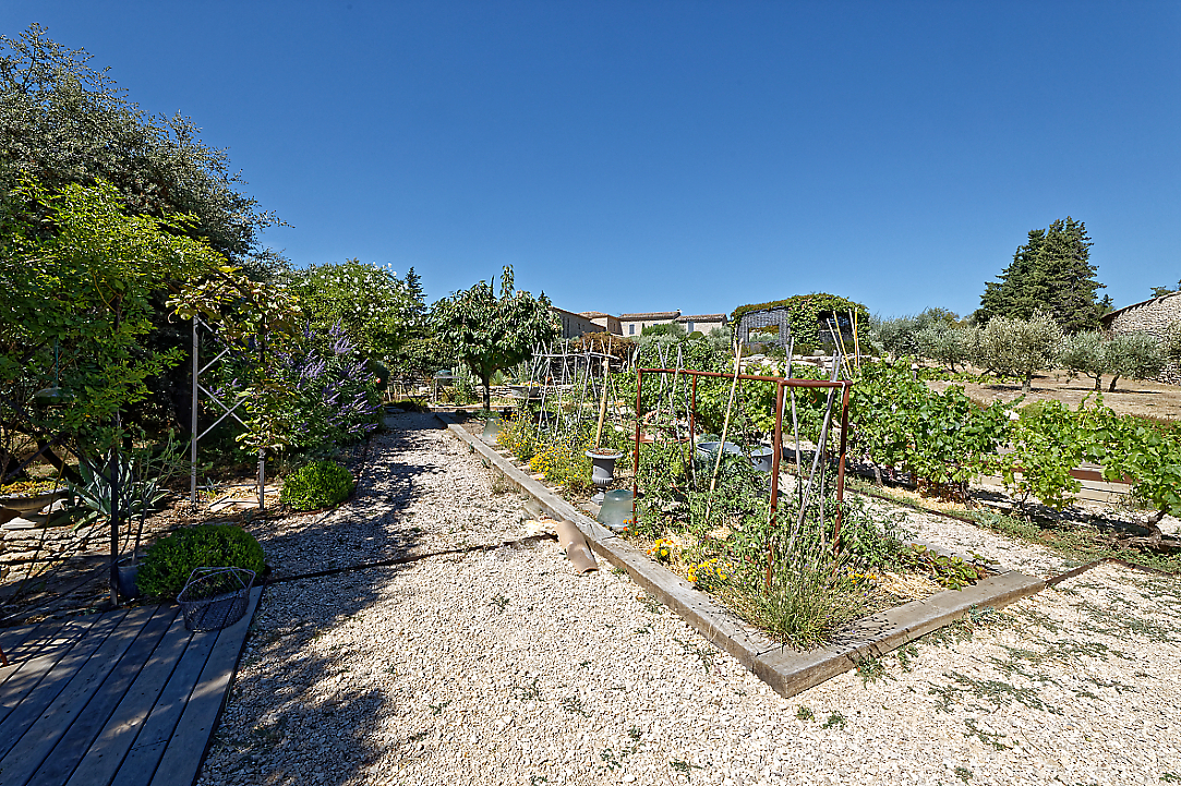 Large renovated farmhouse in Gordes.Inside, very large living rooms with a huge glass roof and a high ceiling, a mezzanine, with a contemporary layout, bright rooms.Outside, a swimming pool with terrace, many spaces furnished with arbours, recesses, remaining stone facade and a large park landscaped and raised with lush Mediterranean vegetation.