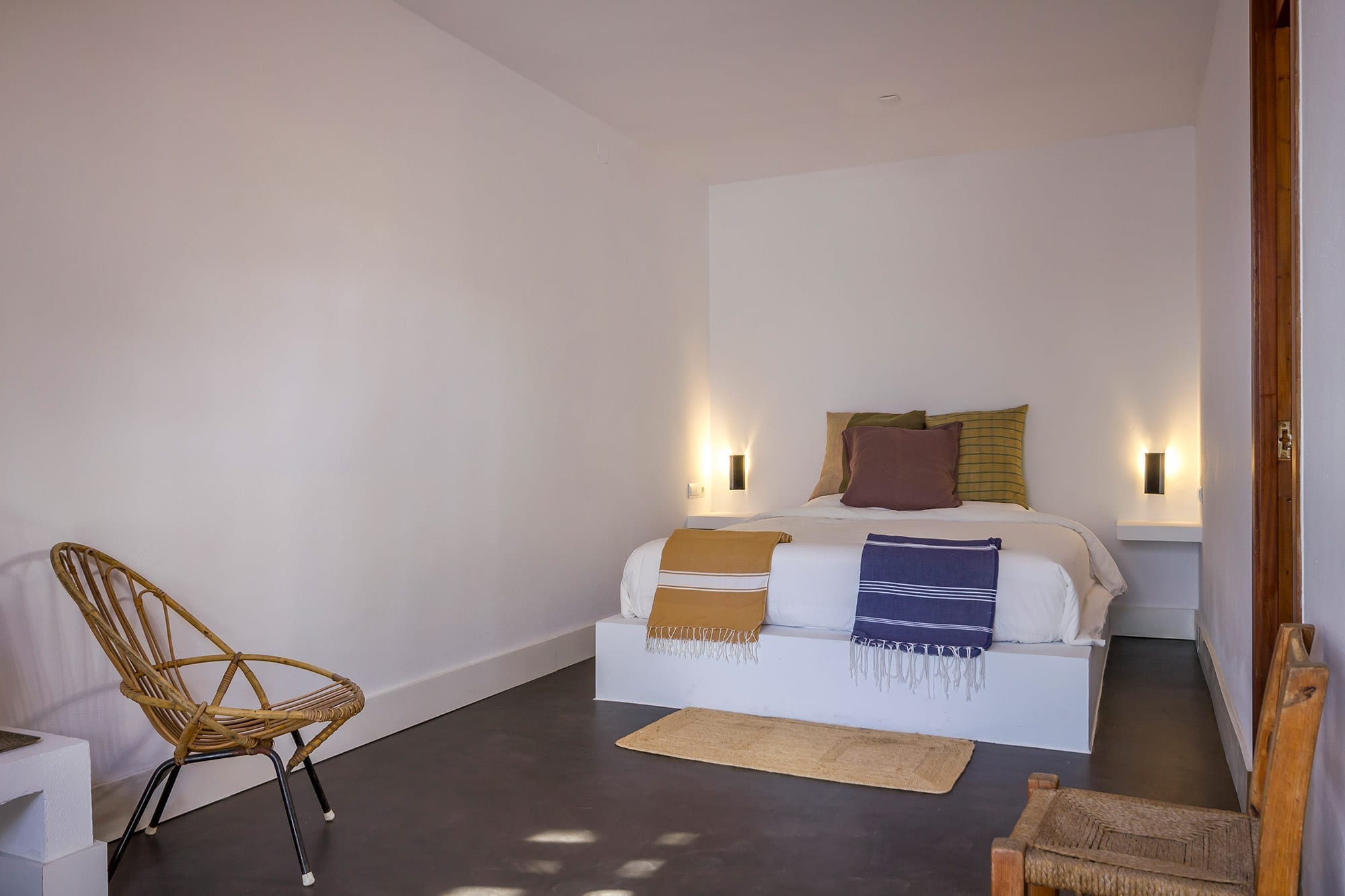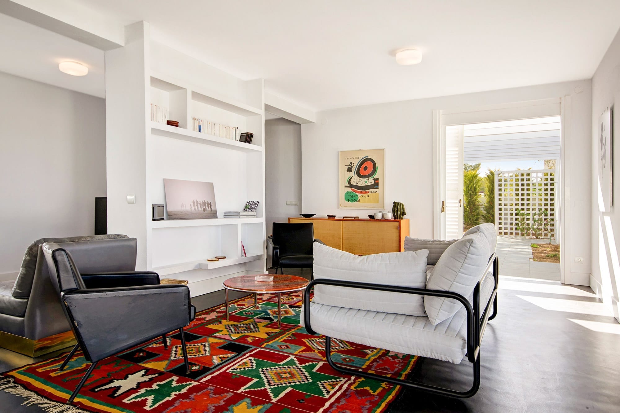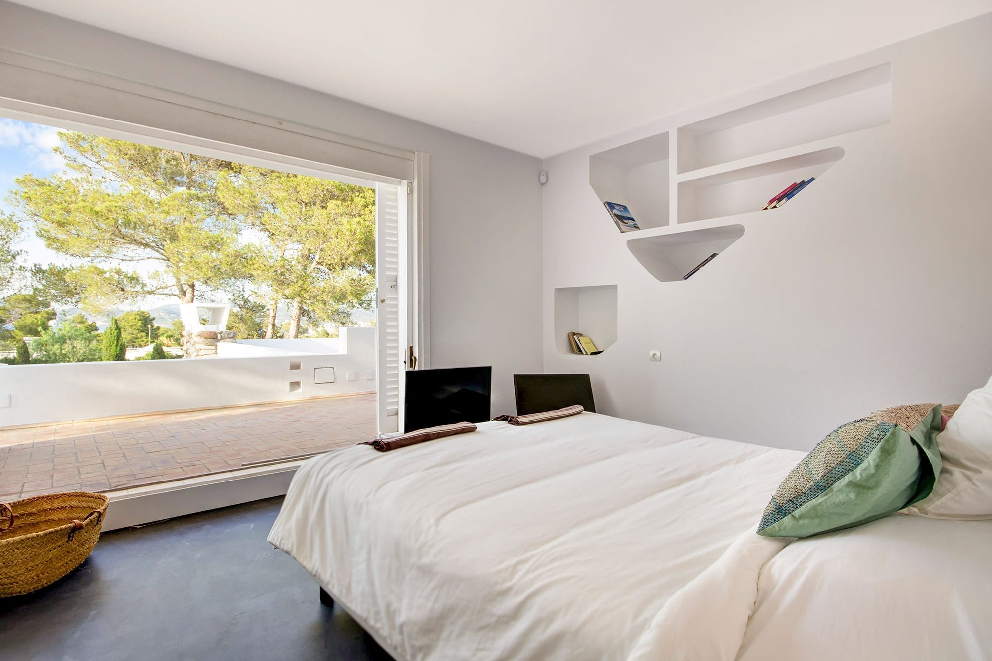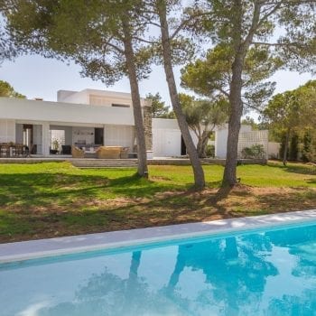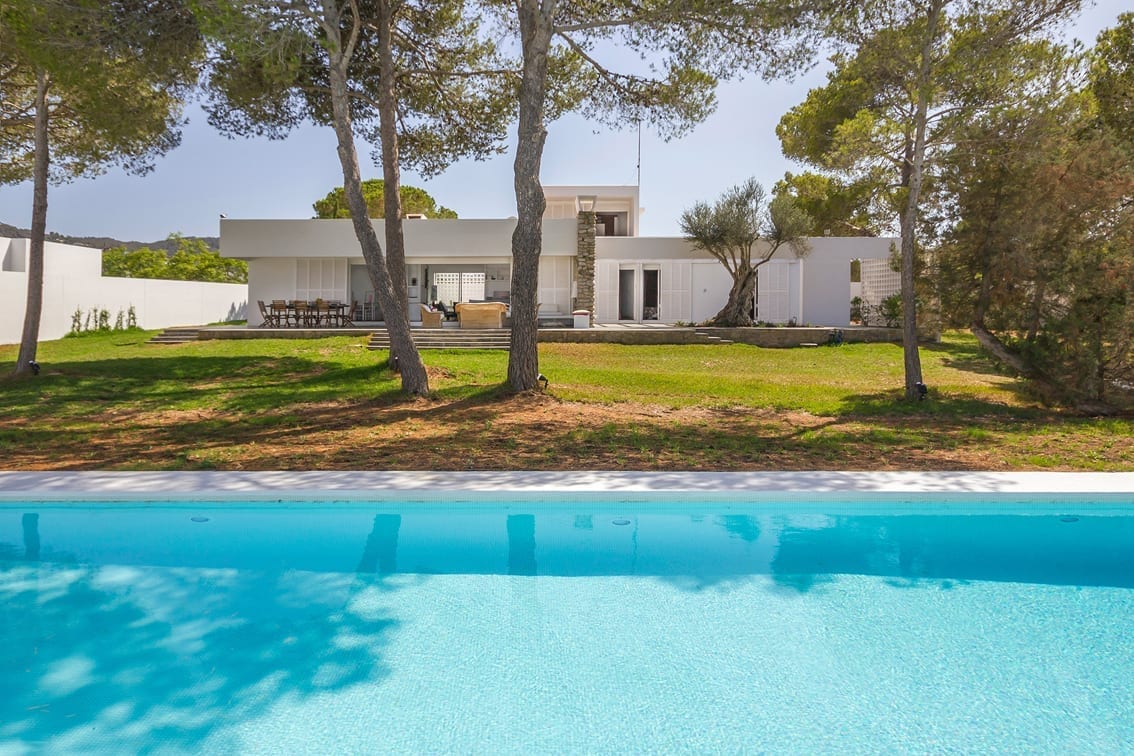 Villa d’architecte des années 60, entièrement rénovée en 2016, situé à proximité des plus belles plages (Cala Bassa, Cala Comte, Cala Tarida, etc.). A l’intérieur, des pièces à vivre aux murs clairs, un aménagement contemporain et une décoration soignée, 5 vastes chambres lumineuses à la décoration sobre. A l’extérieur, dans un jardin arboré, une grande piscine de 24 x 6 entourée d’une grande terrasse.
